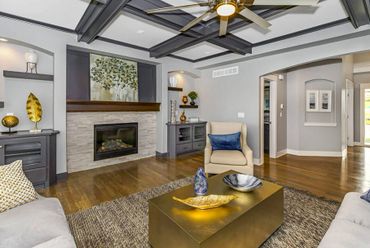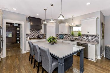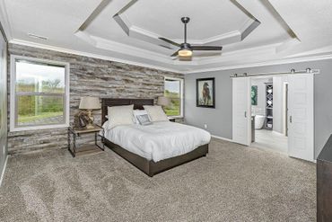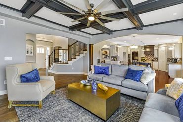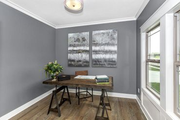 Luxury and thoughtful design details define the popular Delaney III. From the moment you enter the front foyer, you’re welcomed by a formal dining room and a private den or office—ideal for both entertaining and everyday functionality. The great room features signature ceiling details, oversized bow-bay curved windows, and a striking fireplace that creates a warm and memorable gathering space.