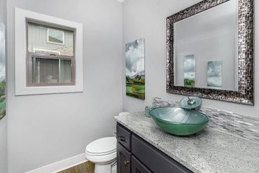 Convenience continues near the garage entry with a built-in mud bench to keep daily essentials organized, along with a nearby powder room for guests. The main-level primary suite serves as a private retreat, featuring a spacious five-piece bathroom with dual vanities, a soaking tub, and a large tiled walk-in shower with a built-in seat for a spa-like experience. A generous walk-in closet completes the suite.