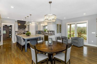 The kitchen is designed to be the heart of the home, offering plenty of room to cook, connect, and entertain. An adjacent breakfast area provides a casual dining option, while the oversized pantry adds valuable storage. Just beyond, the covered back deck offers a peaceful place to relax and enjoy the view.